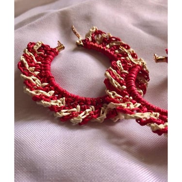 Aretes ROSITA, forrados en iraca y se componen de una trenza elegante que los rodea y en su parte superior constan de una flor tejida en la misma trenza.