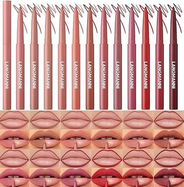 Juego de delineadores de labios incluye 12 tonos ricos y vibrantes, que van desde sutiles nudes hasta rojos atrevidos, asegurando que tengas el color perfecto.