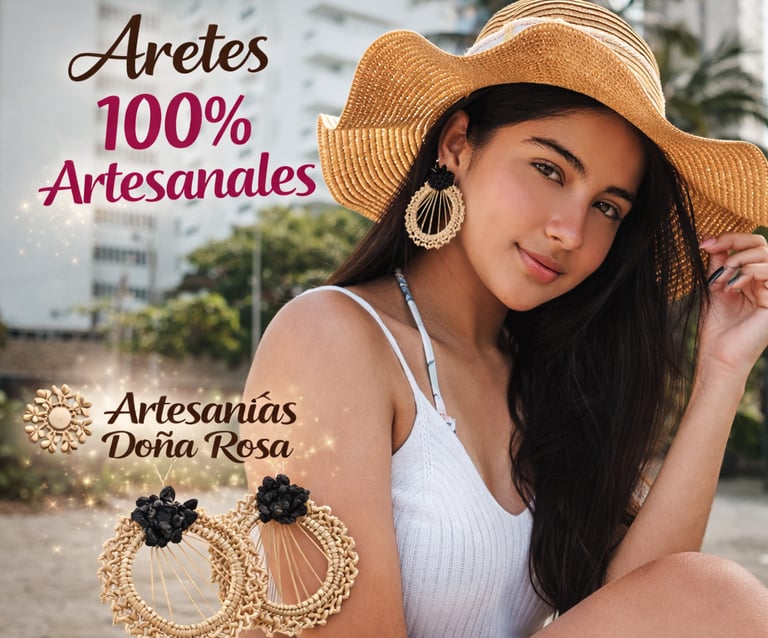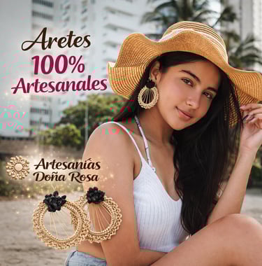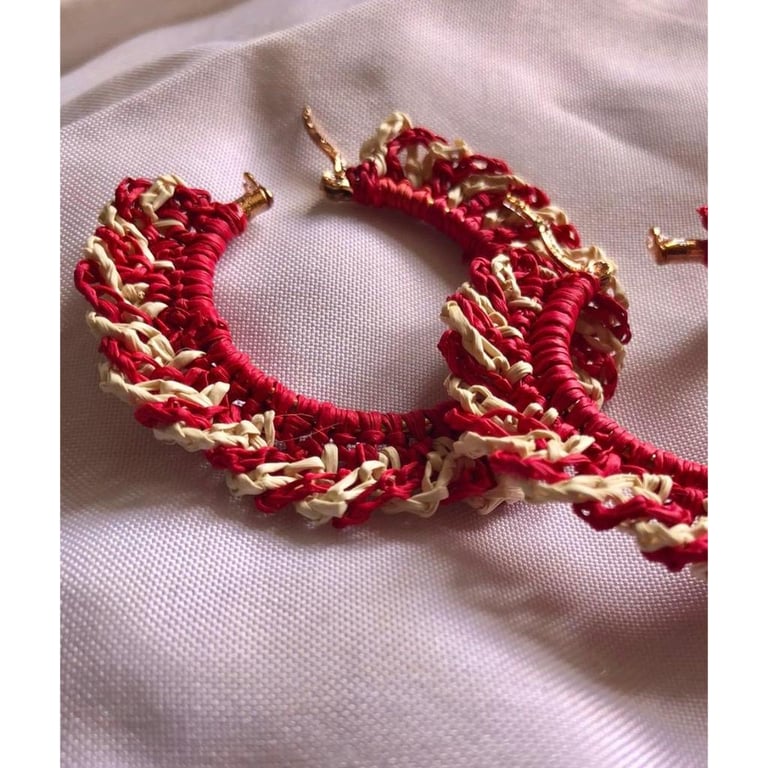 Diversidad de estilos de aretes tejidos en técnica crochet en iraca, demostrando la versatilidad que tiene tanto el material como la técnica empleada