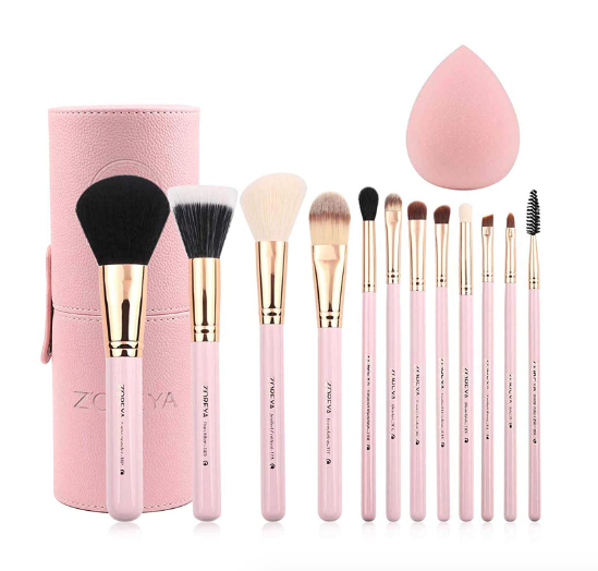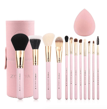Zoreya - Juego de brochas de maquillaje de pelo sintético, 12 unidades: 4 brochas de maquillaje básicas Big Kabuki y 8 brochas de maquillaje precisas