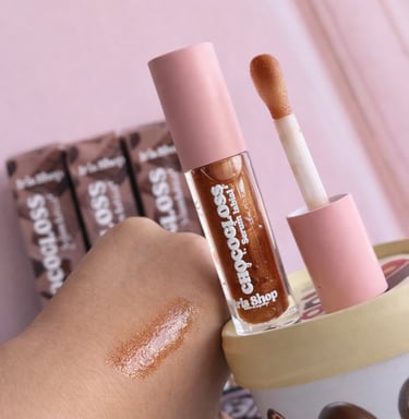 Déjate envolver por el encanto del Chocogloss, un brillo labial irresistible con aroma a chocolate que convierte cada aplicación en un momento dulce