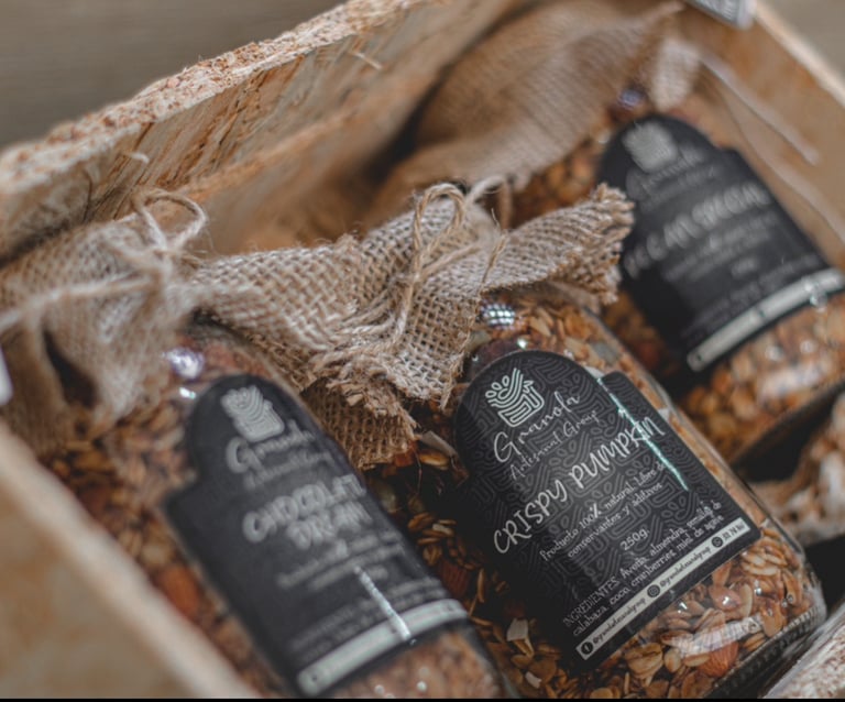 Kit con 3 granolas de 500 gr a tu elección, empacadas para regalo. Combina chocolate, nuez pecans, uvas pasas y semillas de calabaza. Delicioso y saludable